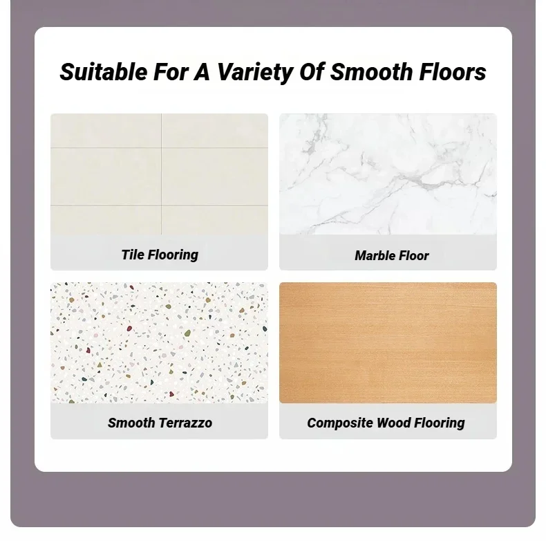 It uses a powerful suction cup that locks firmly onto smooth, flat surfaces like tile, hardwood, laminate, or polished concrete. Just press down, flip the lever, and it’s ready to use.
